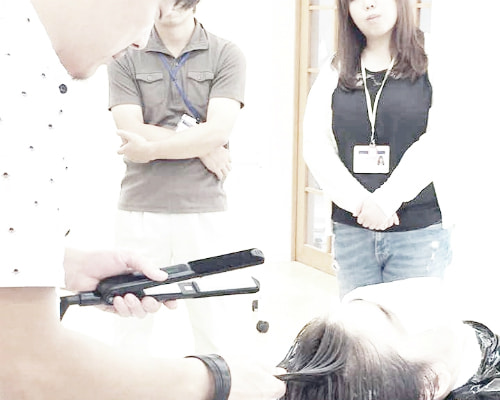毛束を使い、実際に自分の手で薬剤を扱い、