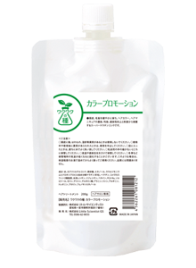 カラープロモーションは、親水性の部分を保護しながら疎水性の部分には浸透を促すため、ヘアカラーやヘアマニキュアの色持ちを強化します。また、刺激を抑えたスーパーケラチンコンクのため、頭皮に優しく、薬剤の影響を軽減します。