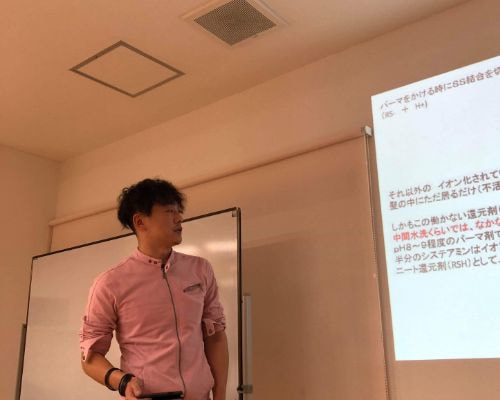 毛束を使い、実際に自分の手で薬剤を扱い、
